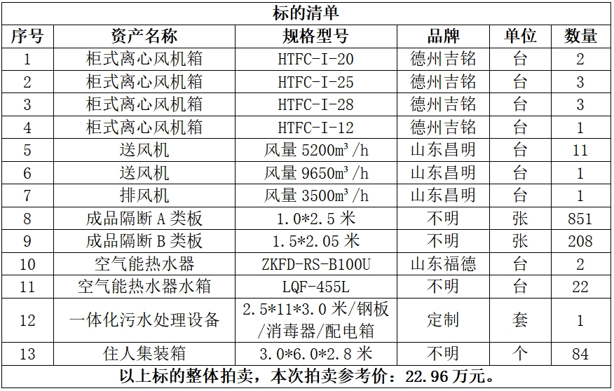 一、拍賣(mài)標(biāo)的:六安市中醫(yī)院閑置資產(chǎn)一批,包括:一體化污水處理設(shè)備、柜式離心風(fēng)機(jī)箱、空氣能熱水器、送風(fēng)機(jī)等,參考價(jià):22.96萬(wàn)元,競(jìng)買(mǎi)保證金:5萬(wàn)元。